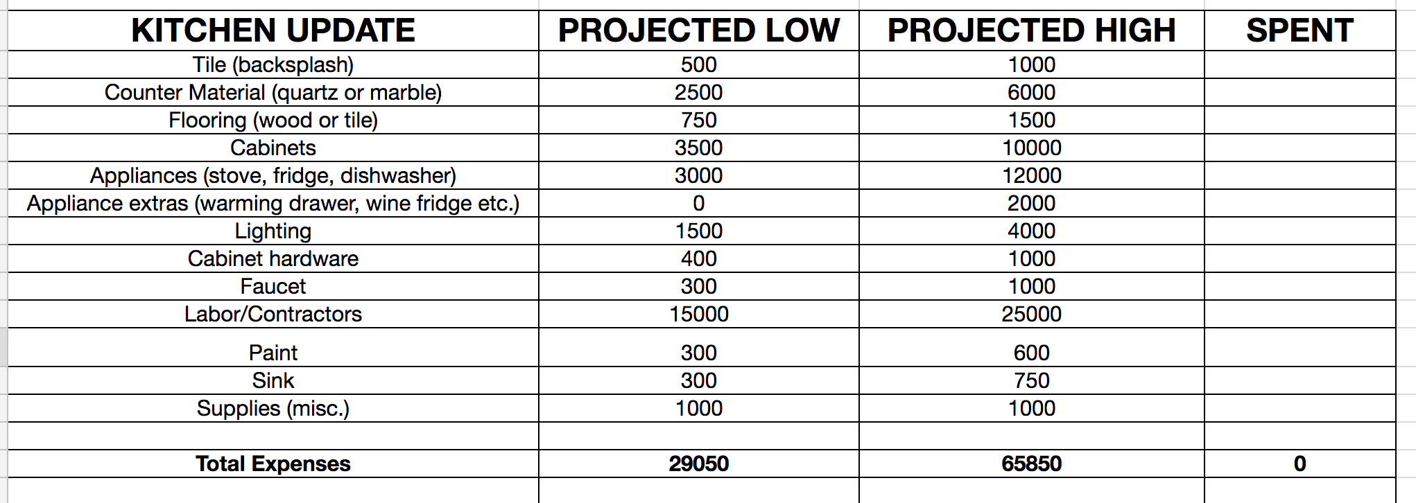 kitchen remodel budget spreadsheet cococozy cococozy 2042×726
